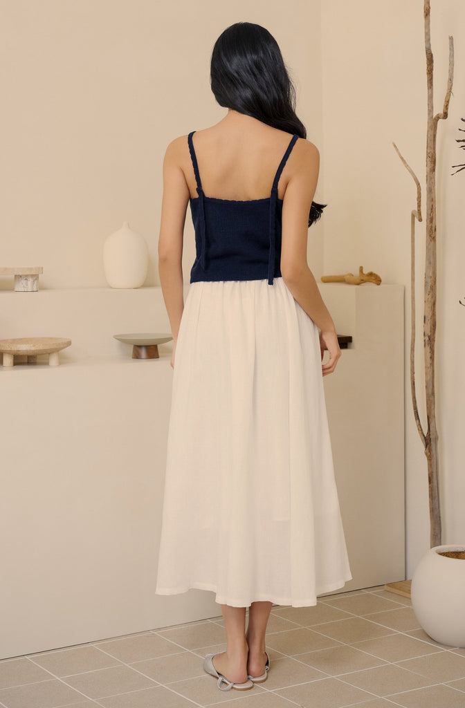 Let me fall elastic midi dress in beige is backordered. We will ship it out separately after 21-30 business days.