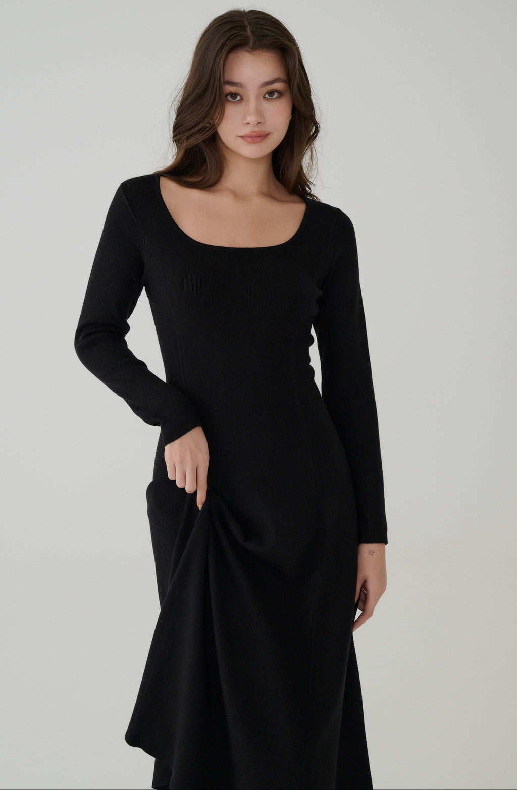 Queen vibe square neck knit dress in Black